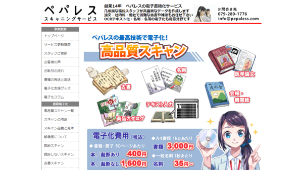 古くて読み取りが難しい古書や雑誌なども、高品質スキャンで対応できるペパレス。オプションの解像度アップを利用すれば、読み取りが困難な文字や画像もキレイにスキャンできる可能性があります。丁寧な取り扱いを心がけているそうなので、古い書籍を電子化したい方は相談してみる価値がありそうです。