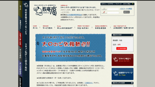 数寄庵は自炊業者の中でも、リーズナブルな価格で電子化を依頼できるのが特徴。はじめて数寄庵を利用する人には、2冊までの無料お試しコースが適用されるため、実質無料で自炊のクオリティを確認できます。シンプルコースでは1冊110円からというリーズナブルな価格で対応してもらえるなど、コスト重視で自炊を依頼したい人におすすめできます。